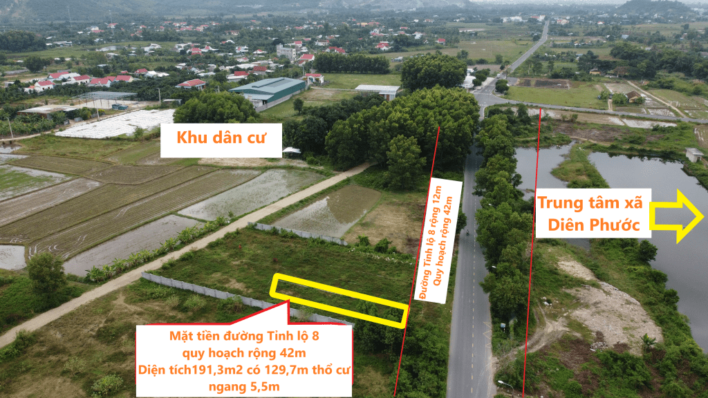 Duy nhất lô mặt tiền đường Tỉnh Lộ 8. Diên Phước, Diên Khánh.